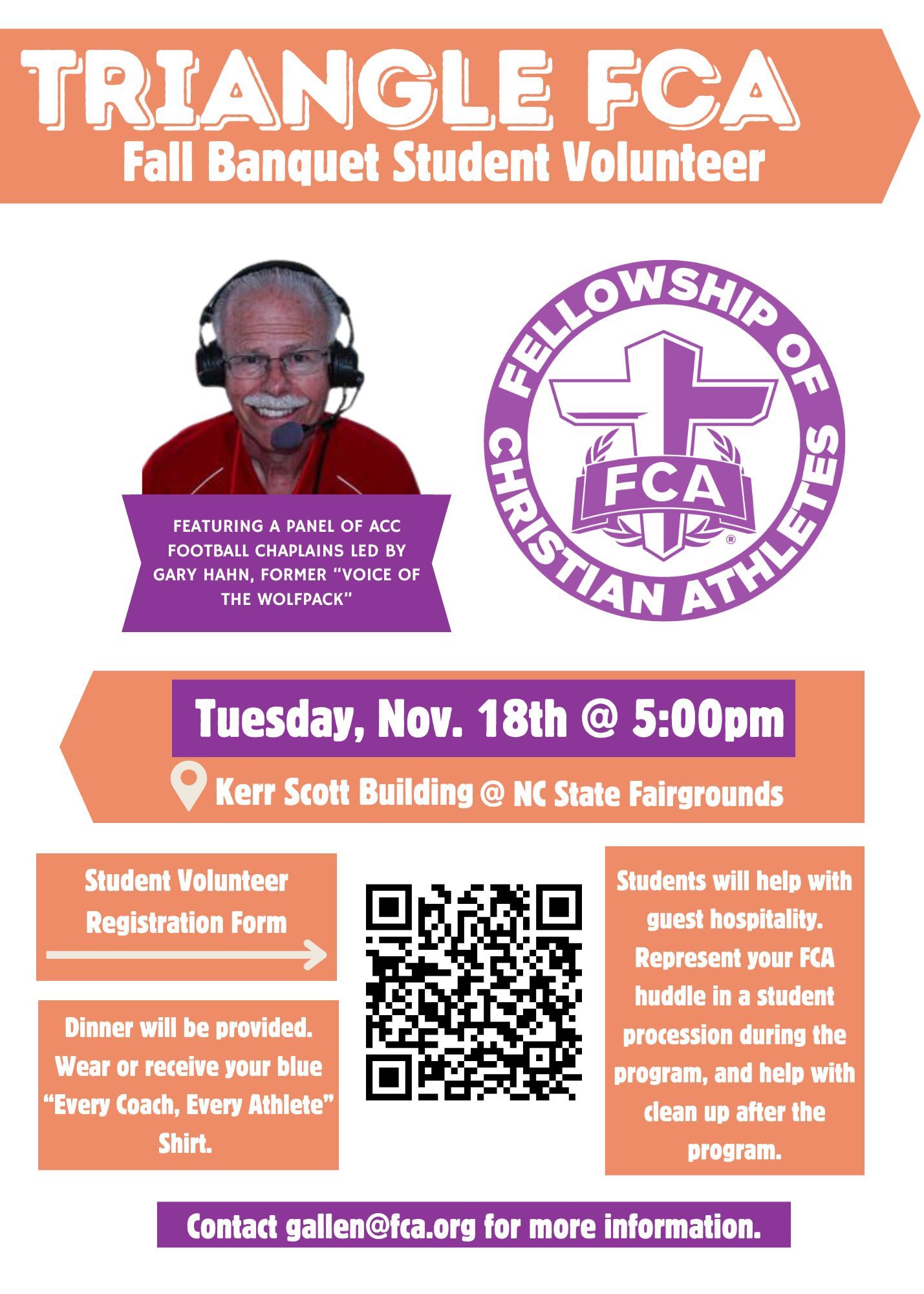 Hey Student Leaders! We need YOU to help serve our generous donors at this year's Fundraising Banquet on Tuesday, November 18th at the Kerr Scott Building at the NC State Fairgrounds.