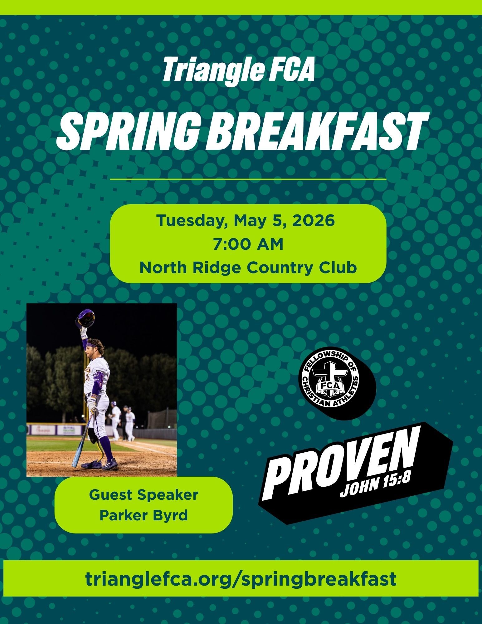 All proceeds allocated to FCA camp scholarships for Triangle coaches and athletes.