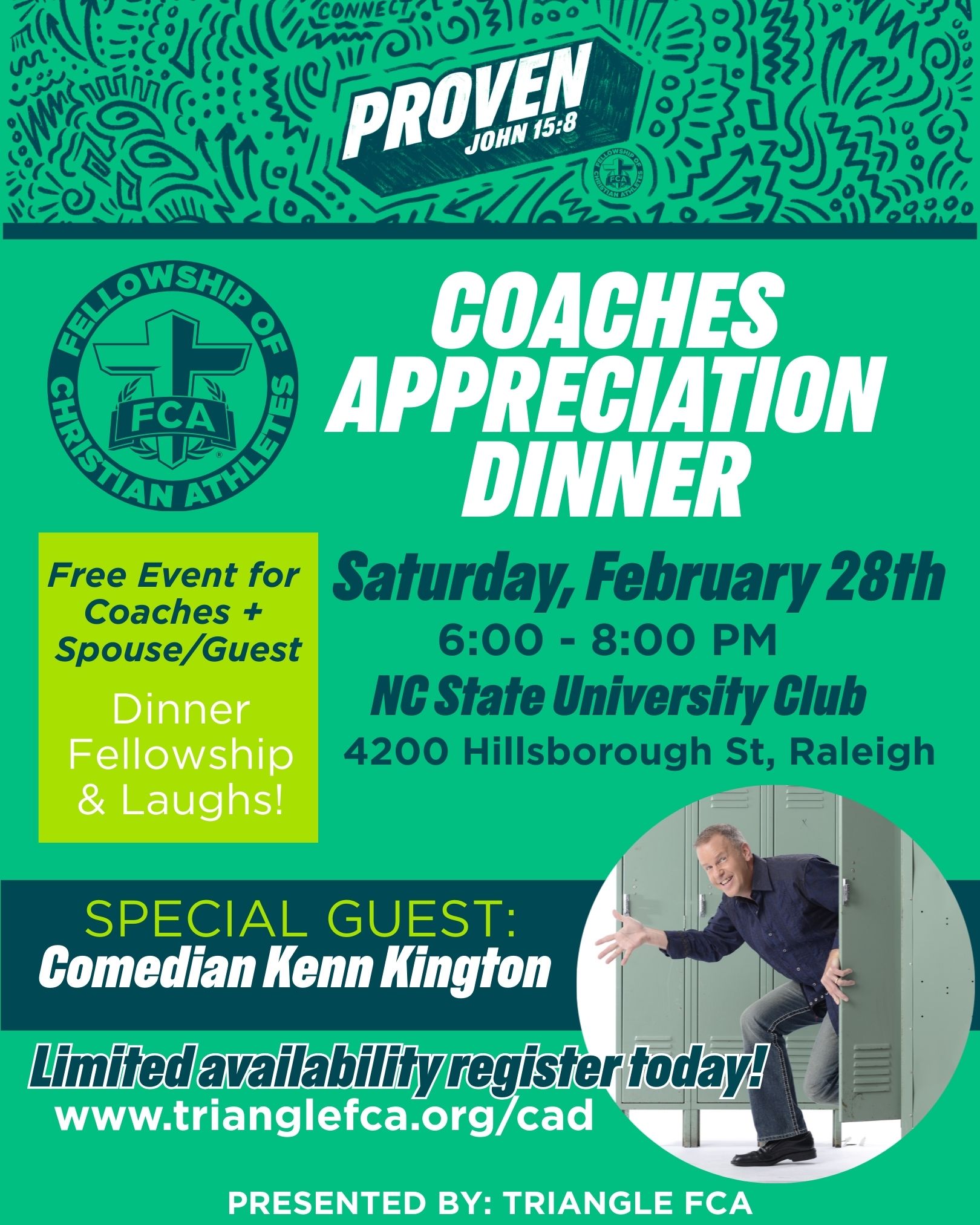 Please join us for a night out for food, fellowship & fun with your spouse/guest AND invite your coaching staff to join you, too!!